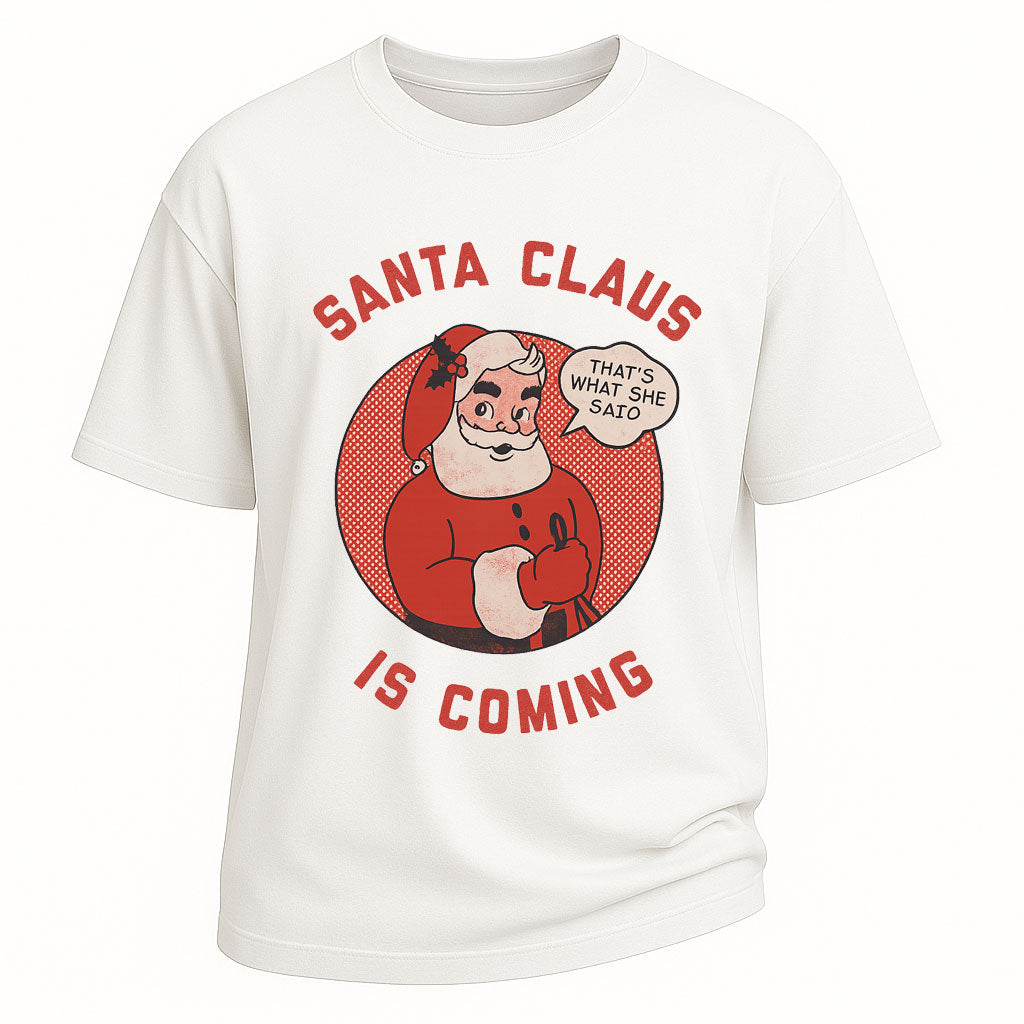 Santa Claus Is Coming Funny Christmas T-shirt