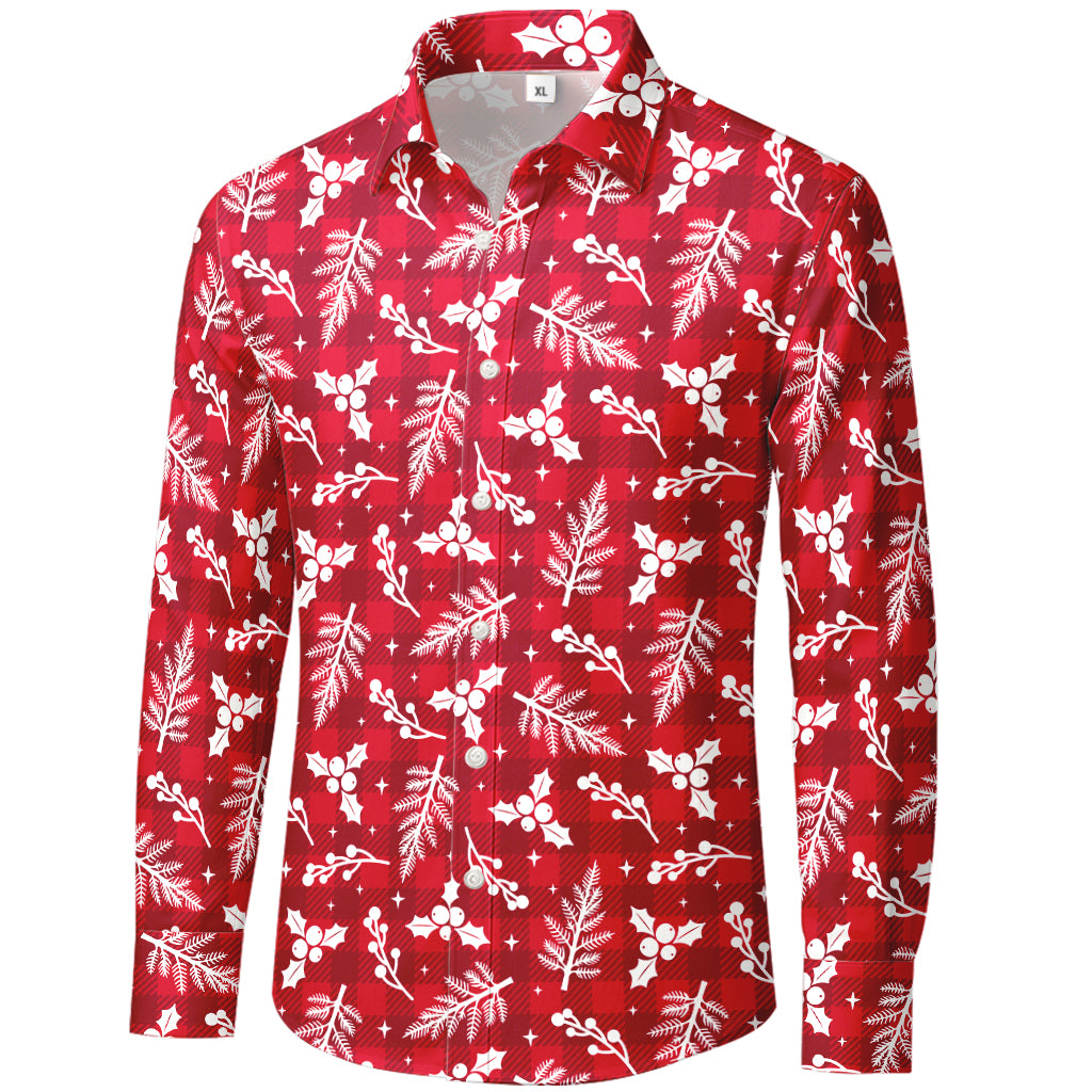 Red Plaid Holly & Pine Long-Sleeve Christmas Shirt