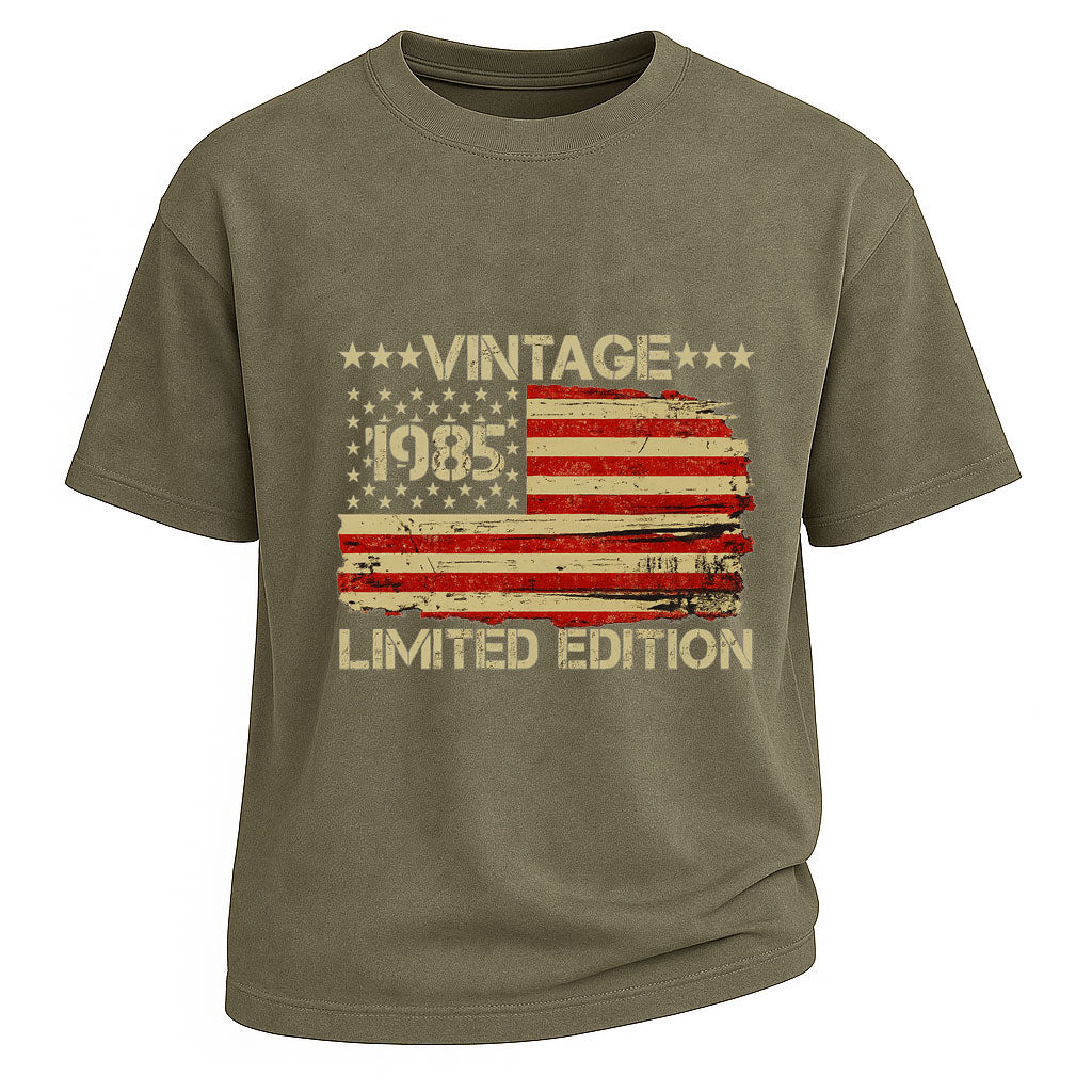 Celebrate your birth year with grit and style in this LouMark original. Featuring a distressed American flag and bold “Vintage 1985 Limited Edition” text, this tee is a tribute to the legends born in 1985. The graphic captures that weathered, patriotic edge with just the right touch of rebellion.