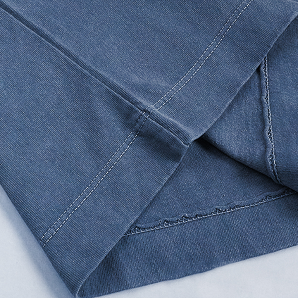 Print Color: Bone beige + dark ink on washed navy tee