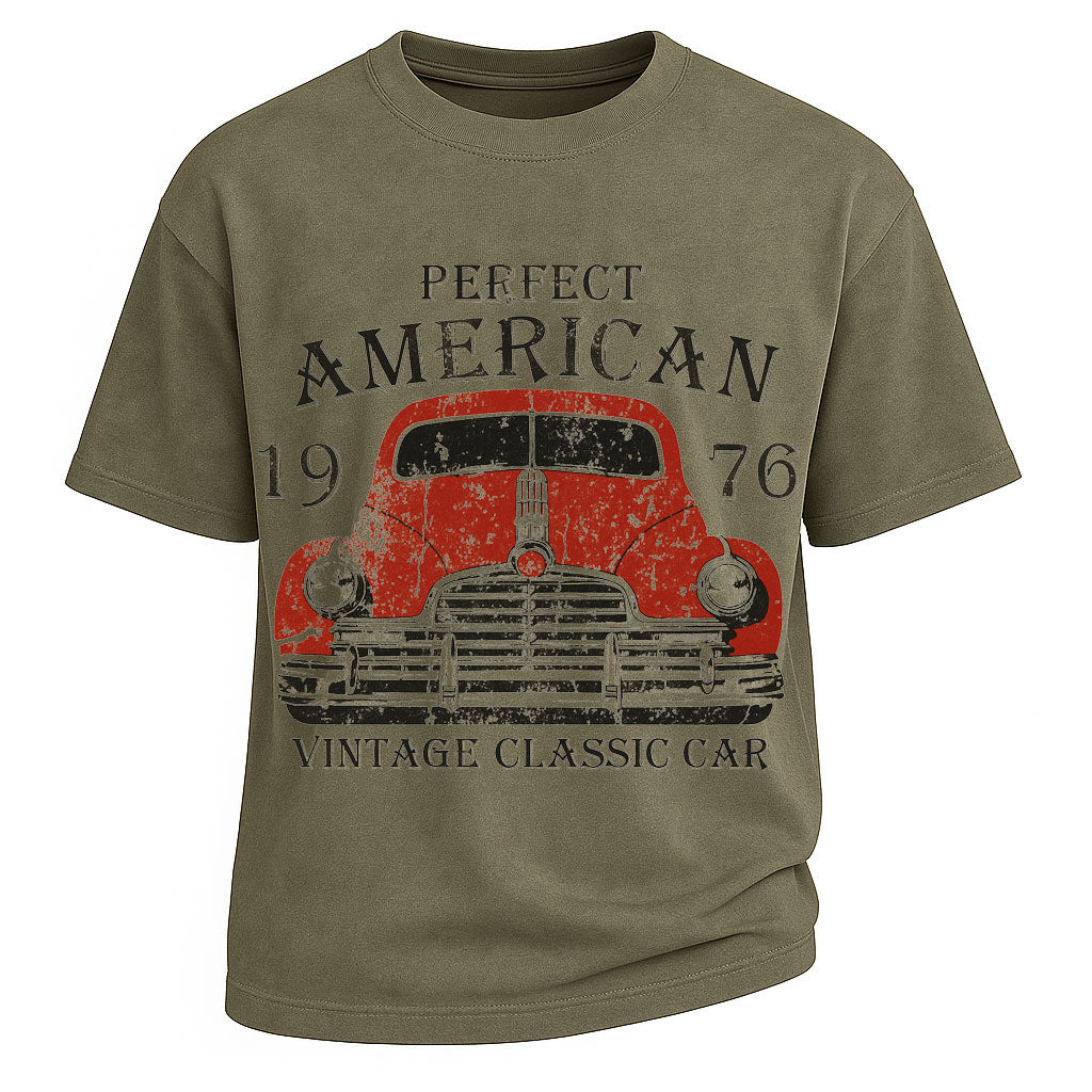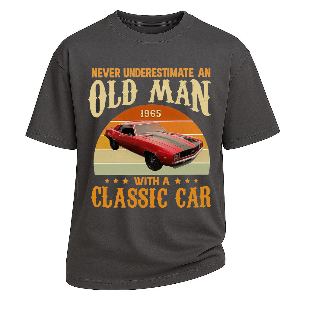 Old Man With Classic Car Graphic Short-Sleeve T-Shirt