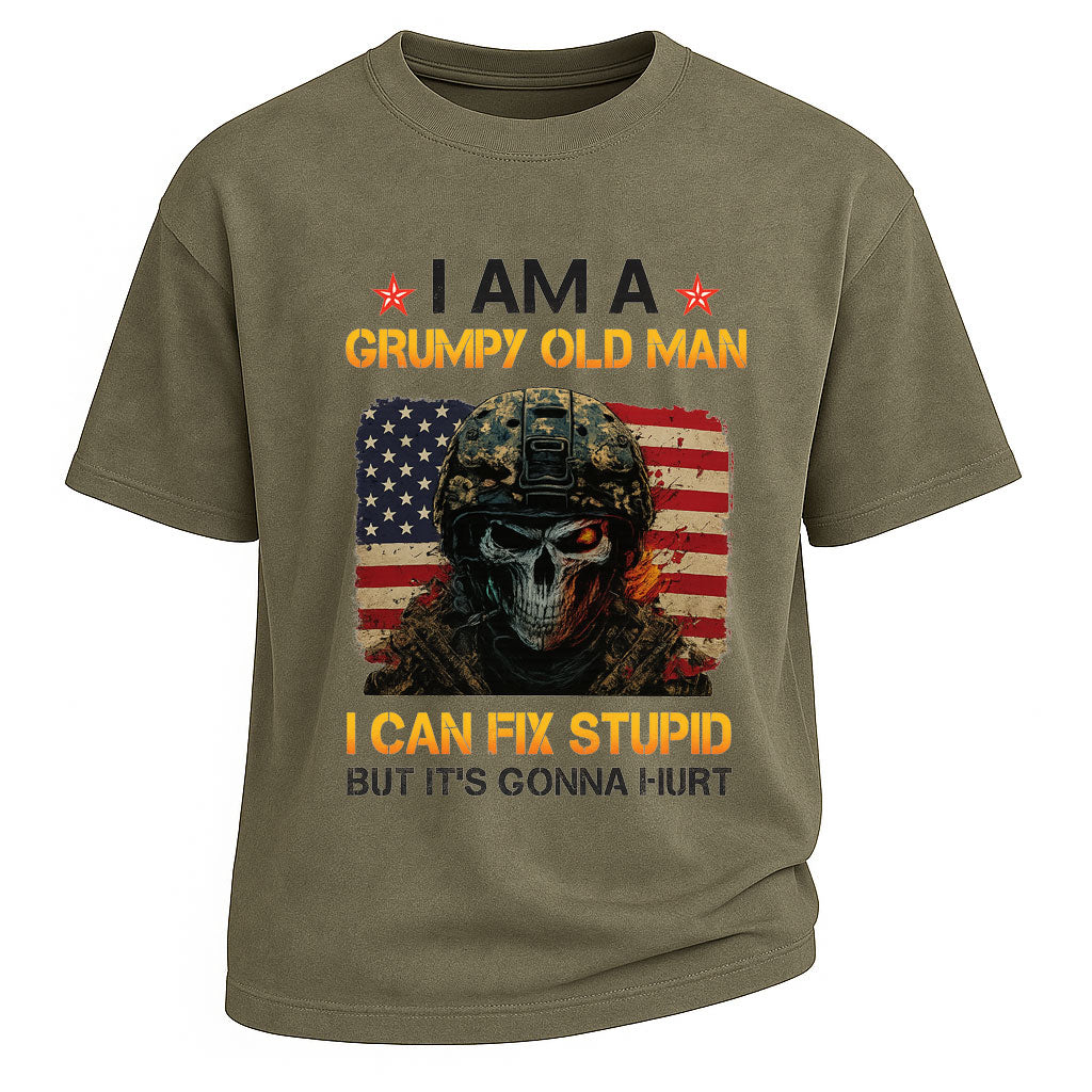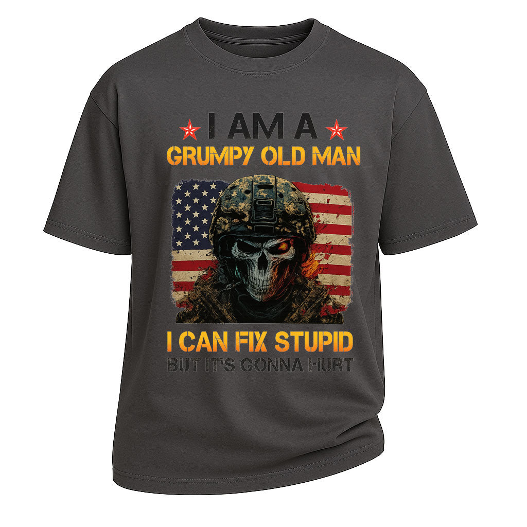 Grumpy Old Man Fix Stupid Skull Graphic Short-Sleeve T-Shirt