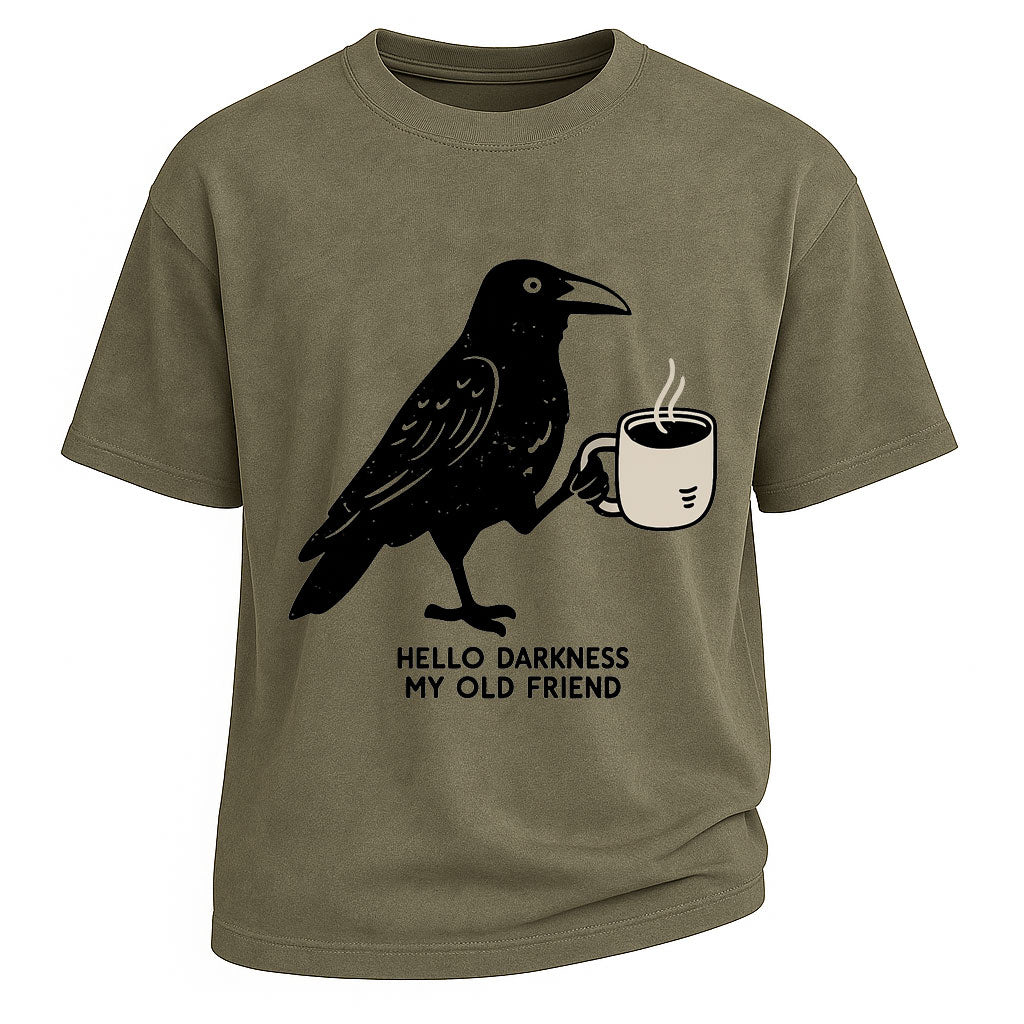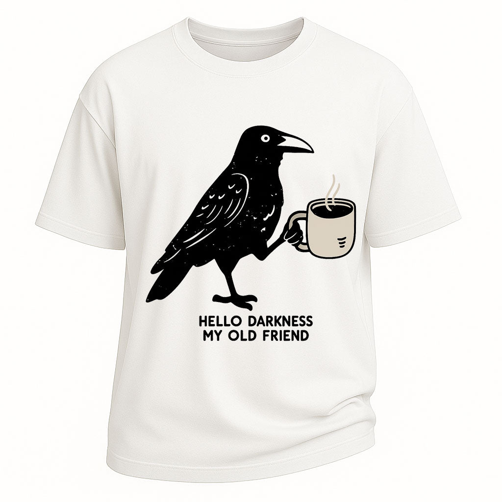 Hello Darkness My Old Friend Crow Coffee Graphic Short-Sleeve T-Shirt