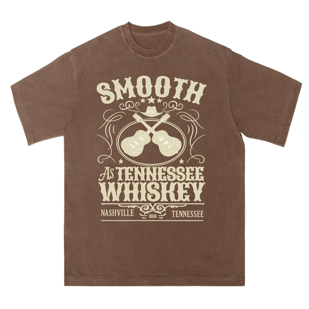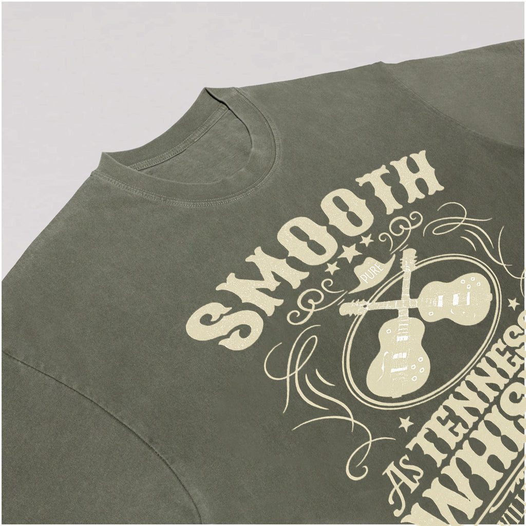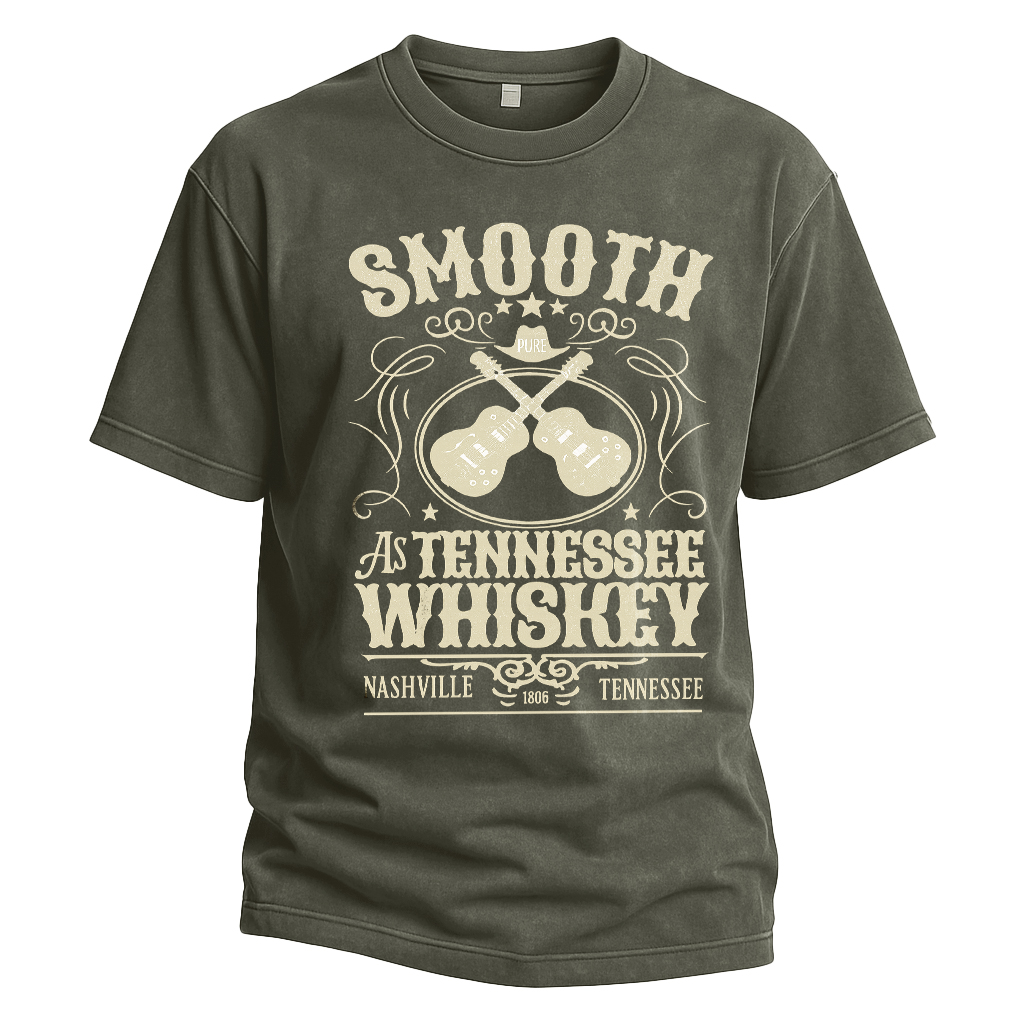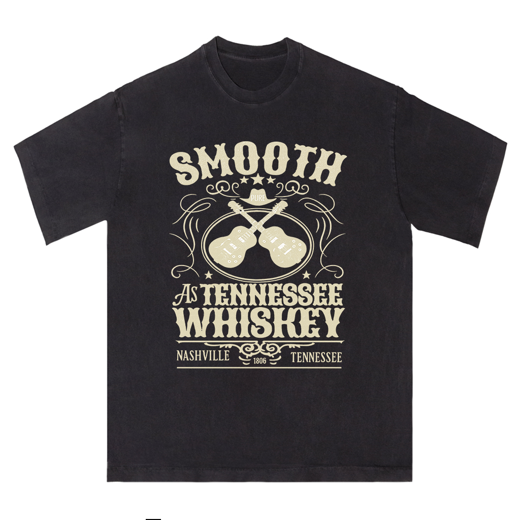Gray t-shirt with 'Smooth as Tennessee Whiskey' graphic design on a white background
