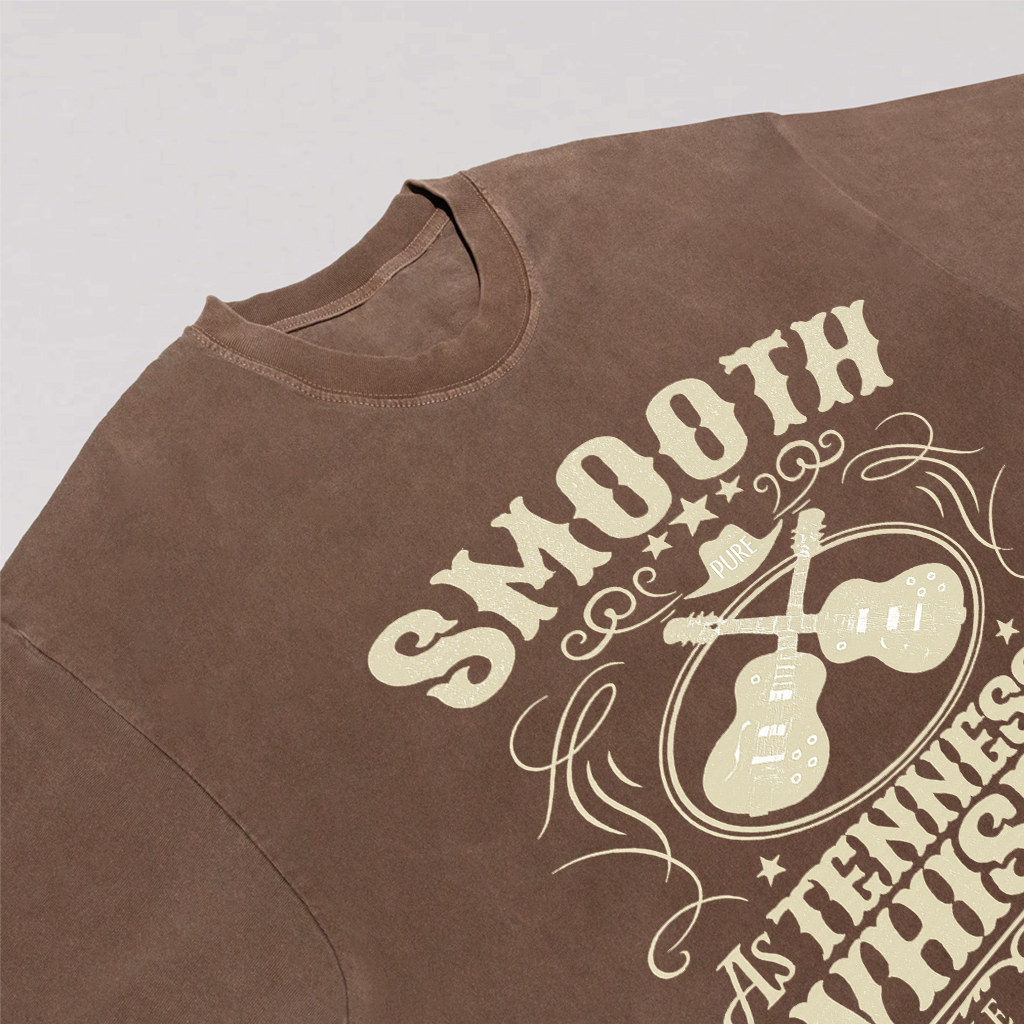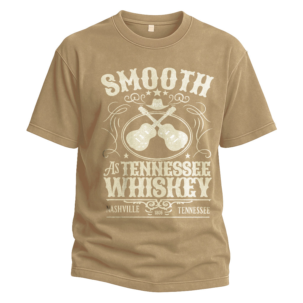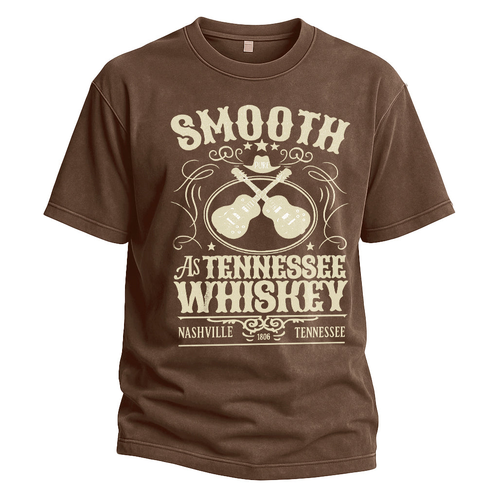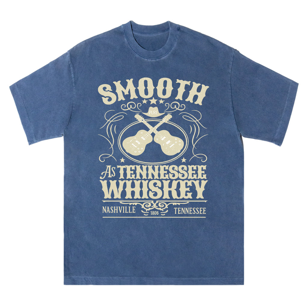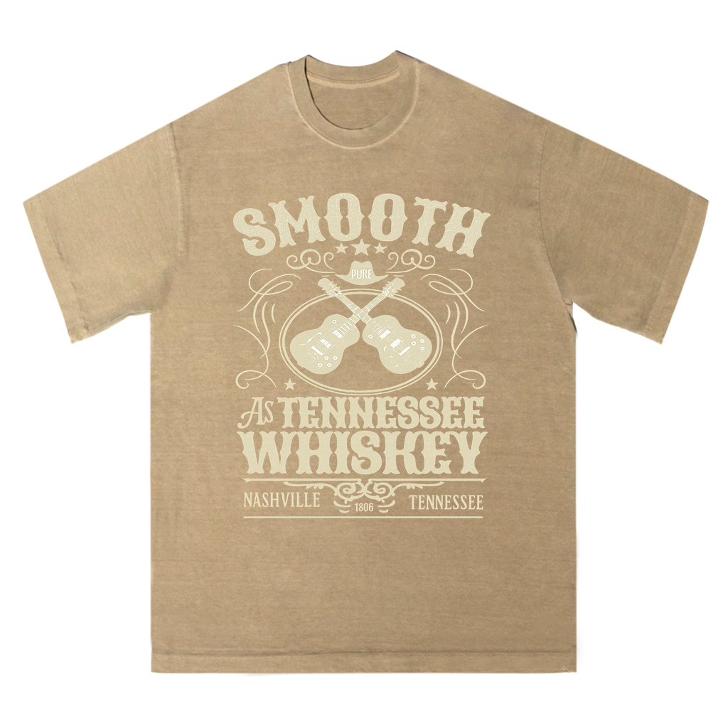 Gray t-shirt with 'Smooth as Tennessee Whiskey' graphic design on a white background