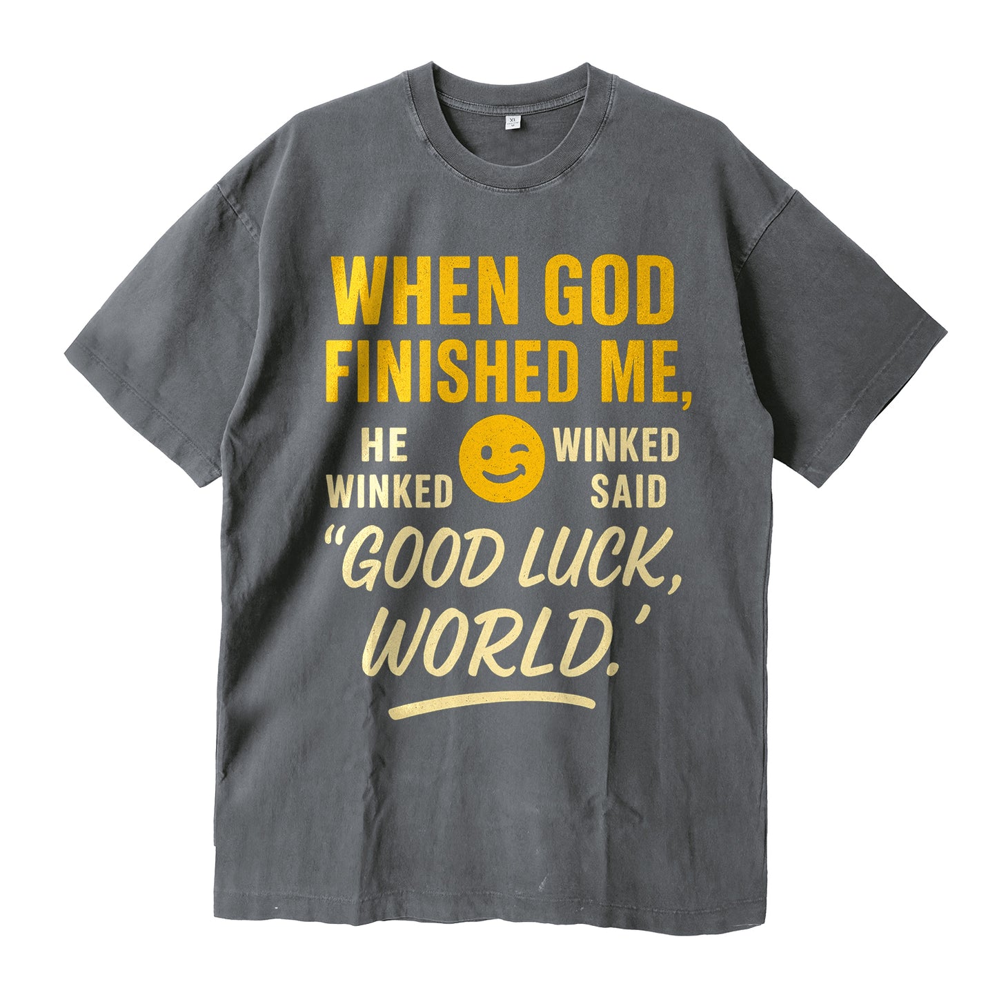 Cheeky, confident, and built to last—our When God Finished Me Tee drops a wink and a smiley to match the line: “Good luck, world.” Cut from dense 260g cotton with a soft washed finish, this relaxed-fit tee brings heavyweight comfort and playful, faith-forward energy to everyday wear.