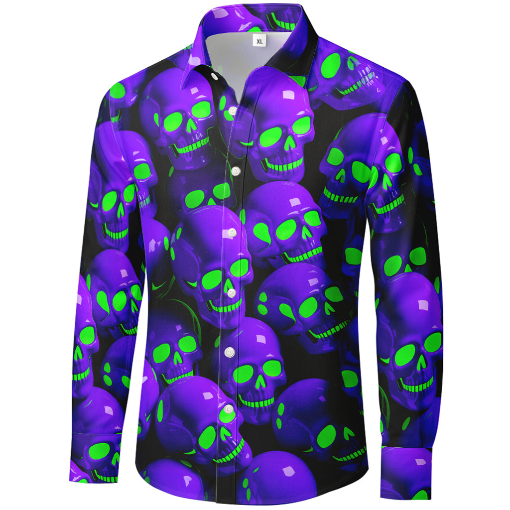 Neon Purple Skulls 3D Print Long-Sleeve Shirt
