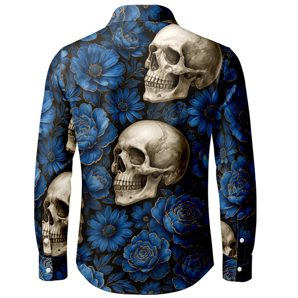 Blue Floral Skulls 3D Print Long-Sleeve Shirt