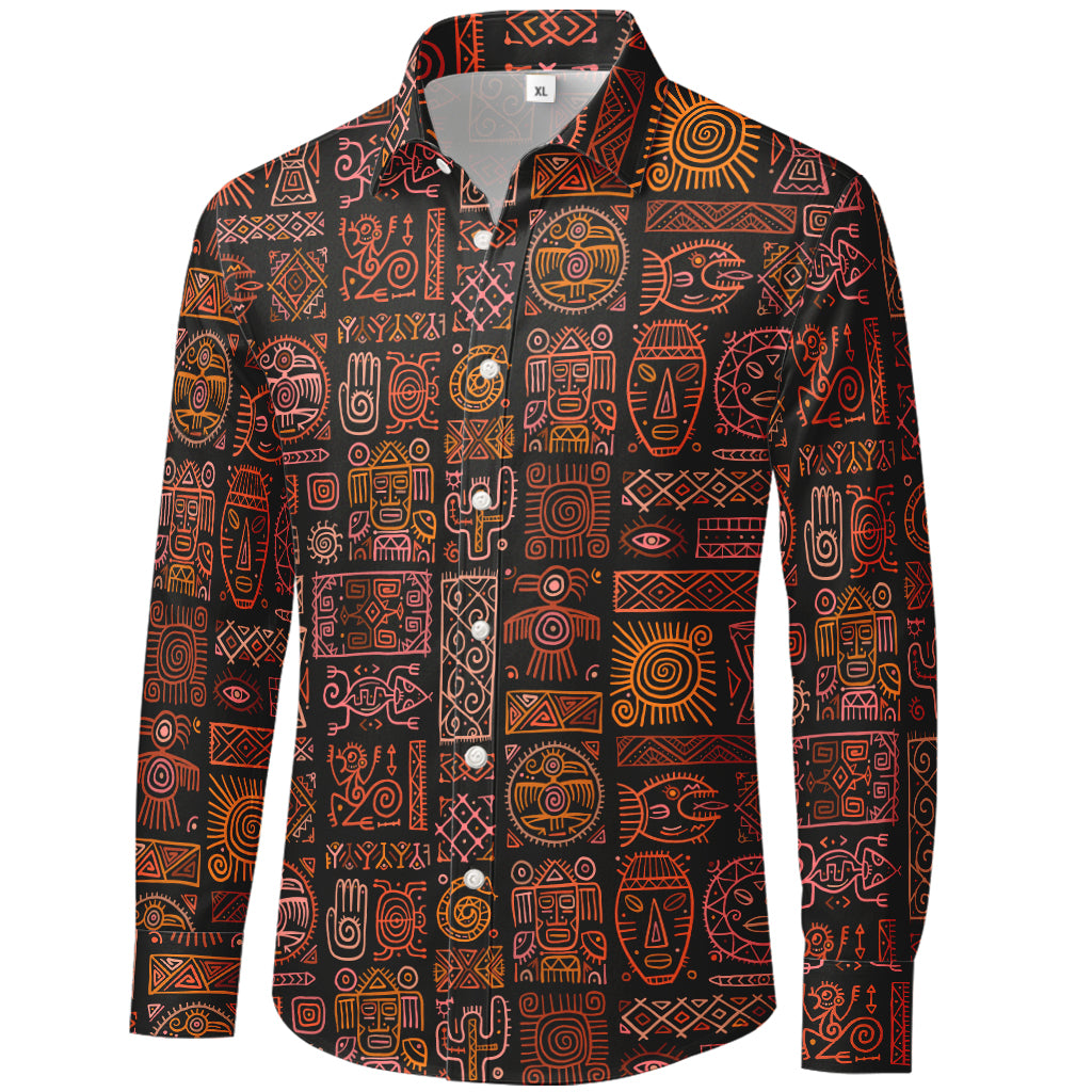 Abstract Tribal Mosaic Long-Sleeve Shirt