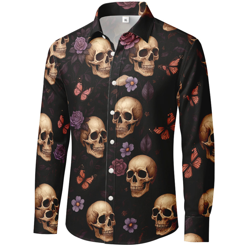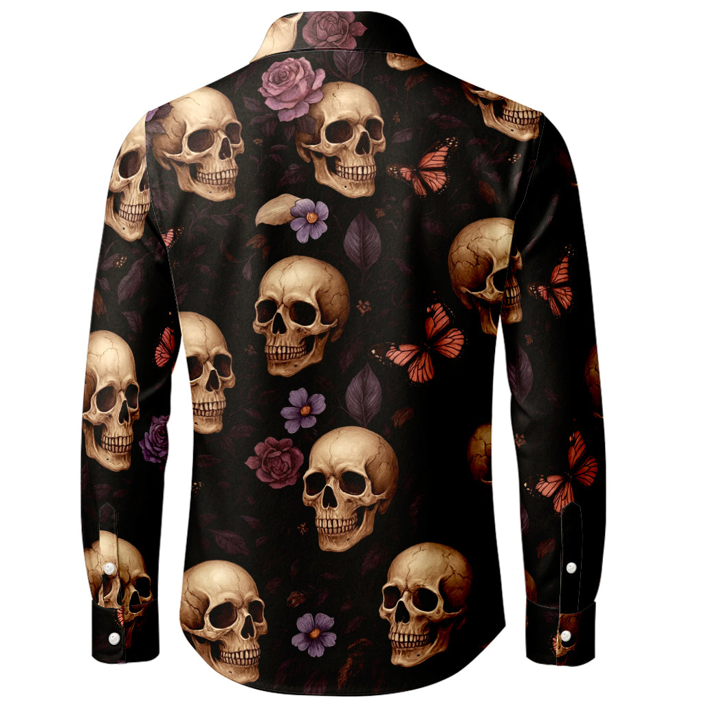 Skulls, Butterflies & Blooms 3D Print Long-Sleeve Shirt