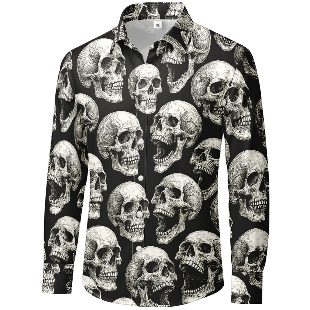 Monochrome Skulls 3D Print Long-Sleeve Shirt