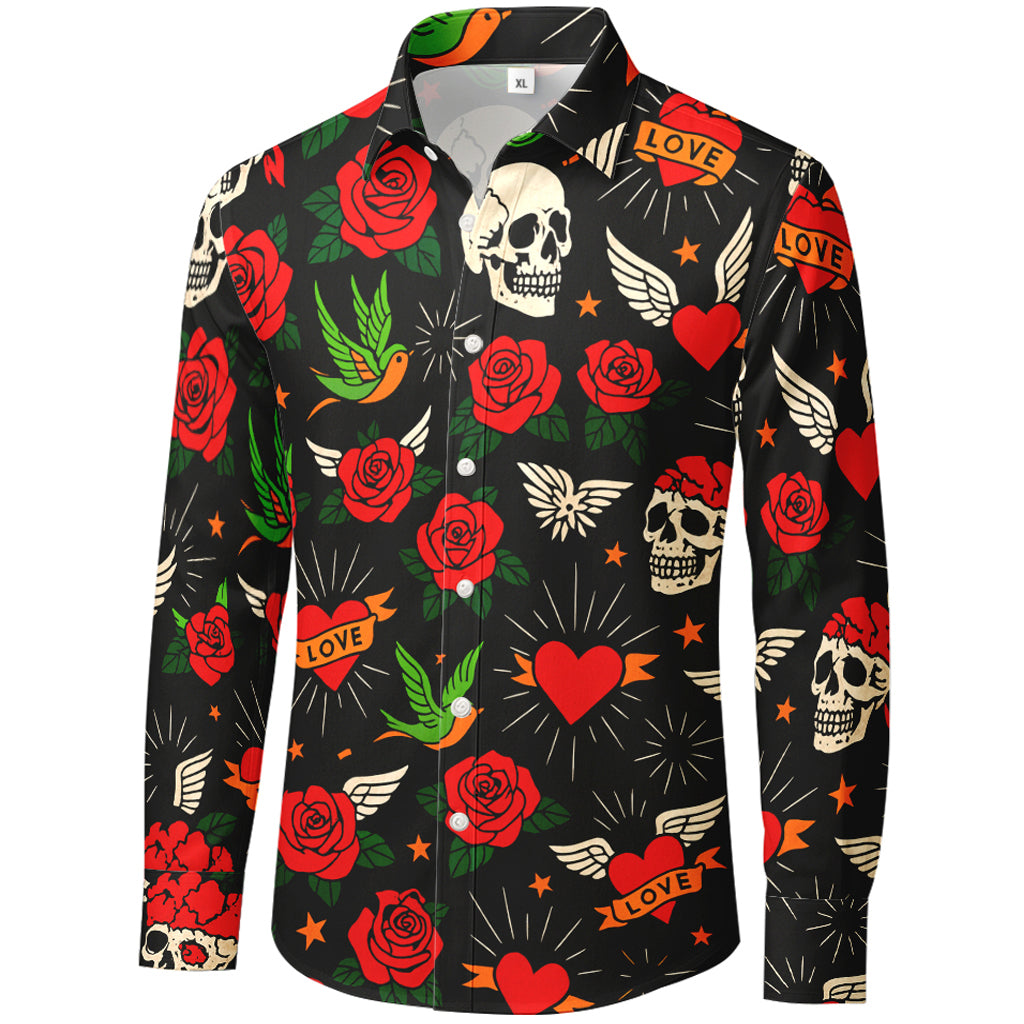 Tattoo Flash Love & Roses 3D Print Long-Sleeve Shirt