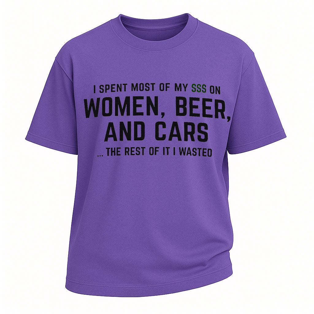 T-Shirt mit lustigem Spruch: Frauen, Bier und Autos