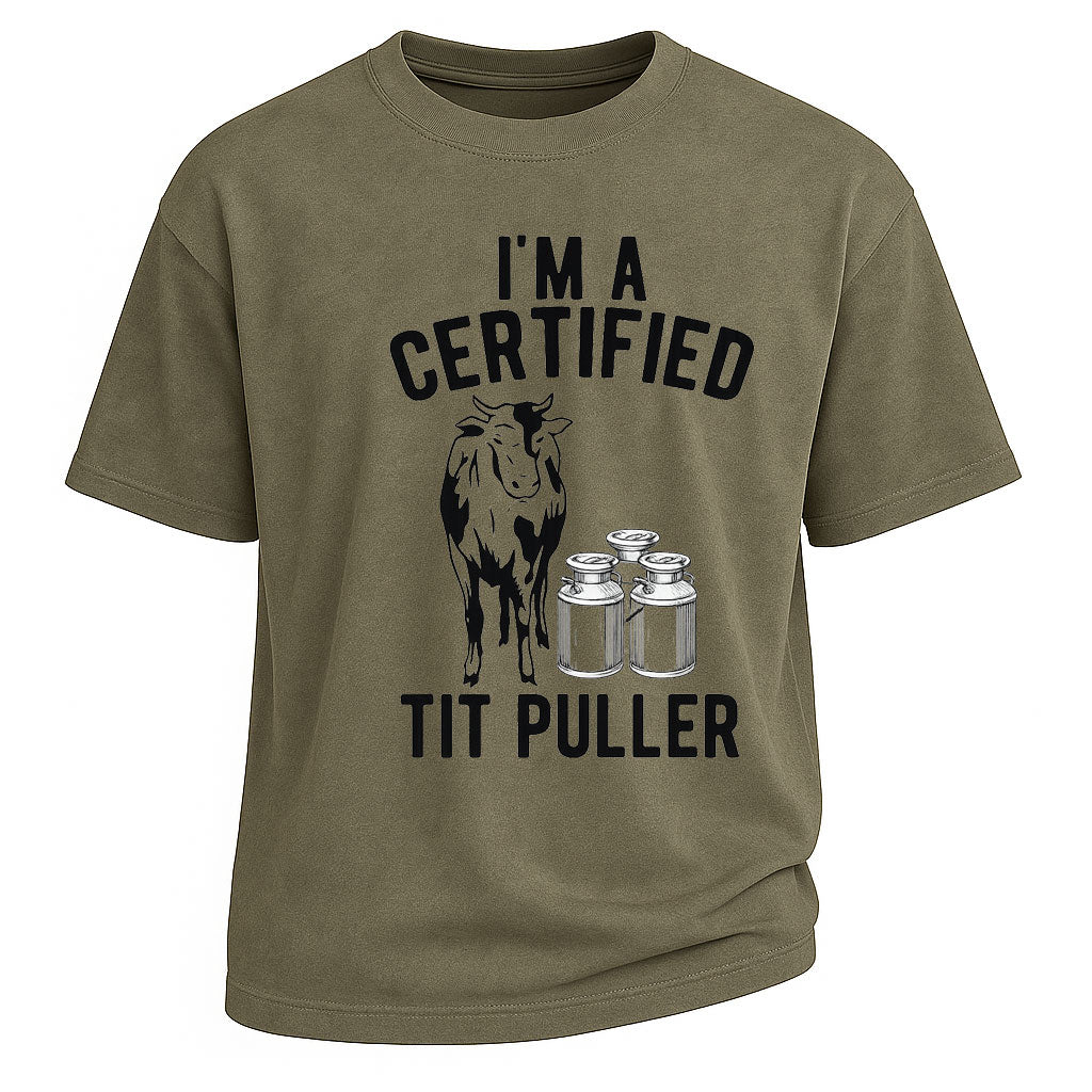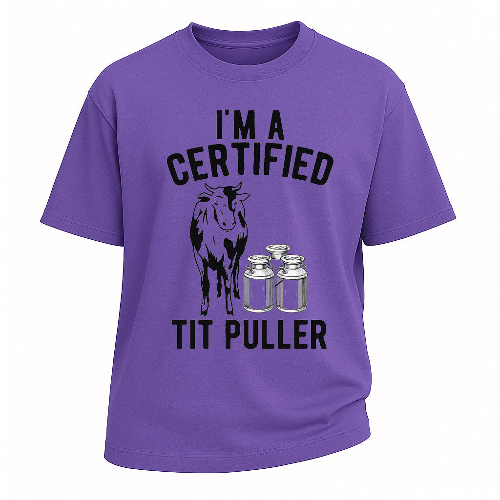 Ich bin ein zertifizierter Brustzieher – Lustiges Bauern-T-Shirt
