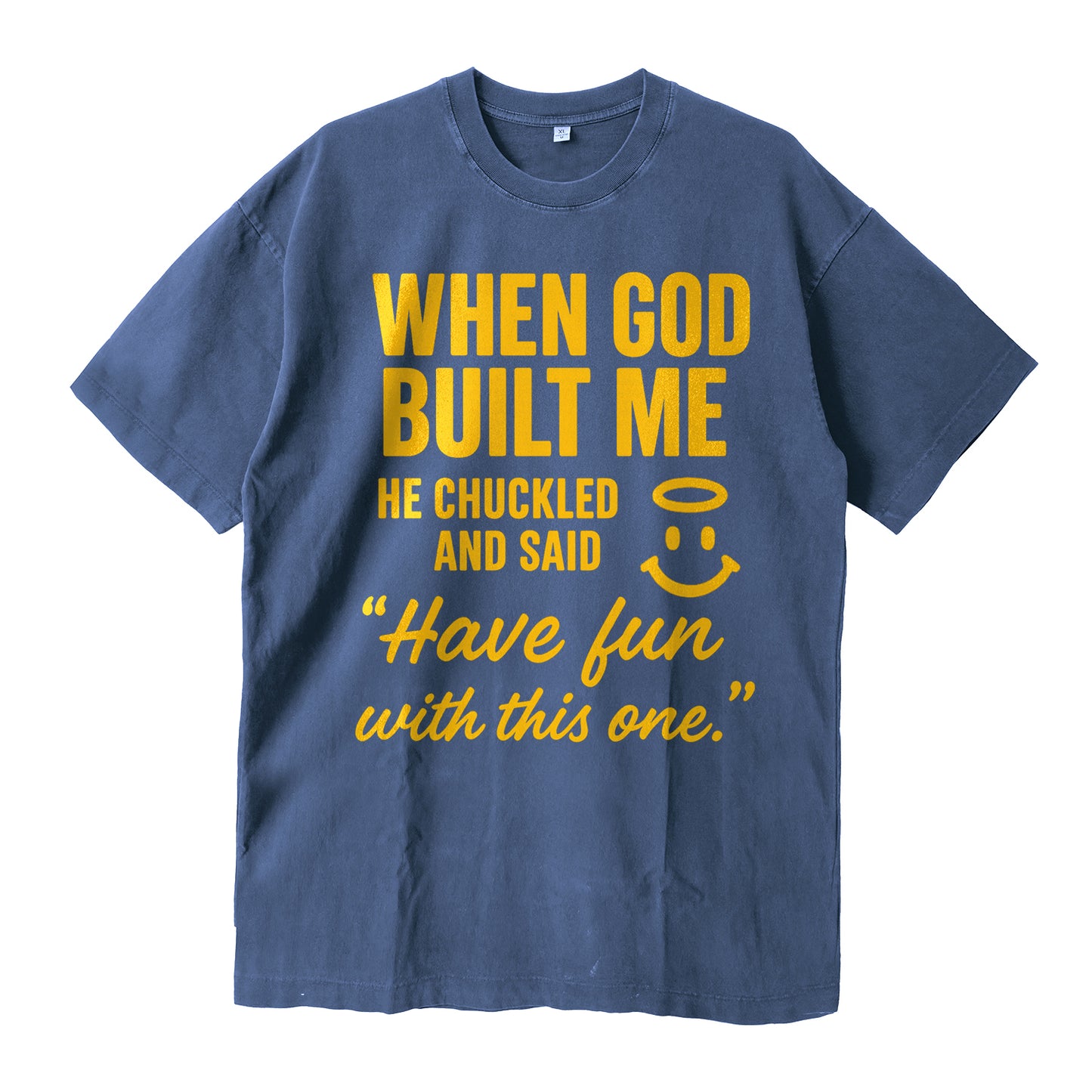 „Viel Spaß damit!“ Das „When God Built Me“-T-Shirt von LouMark kombiniert markante Blockschrift mit verspielter Schrift und einem Heiligenschein-Motiv für einen frechen, gläubigen Look. Gefertigt aus dichtem 260-g-Baumwollstoff und vorgewaschen für ein angenehm weiches Tragegefühl, bietet dieses lässige Shirt gleichermaßen Komfort und Selbstbewusstsein.