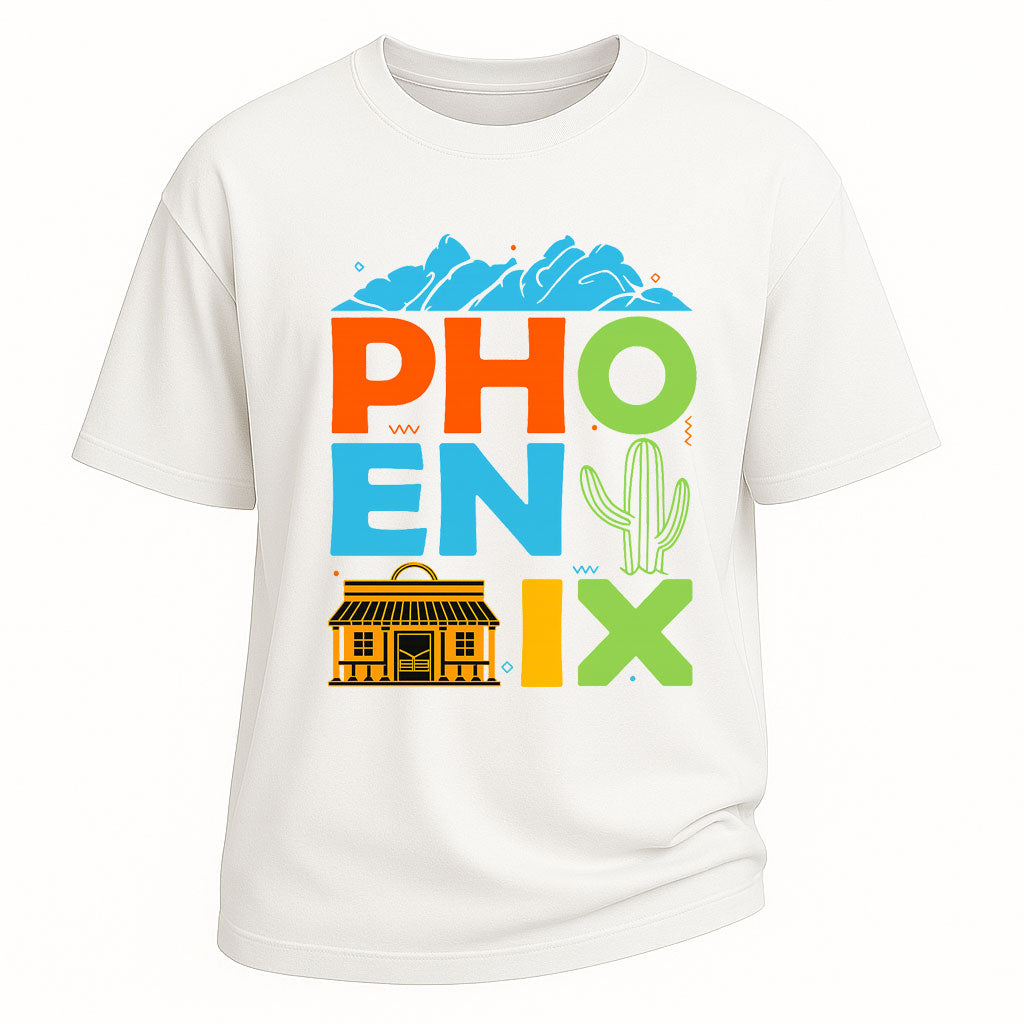 Phoenix Arizona T-Shirt mit farbenfrohem Stadtmotiv