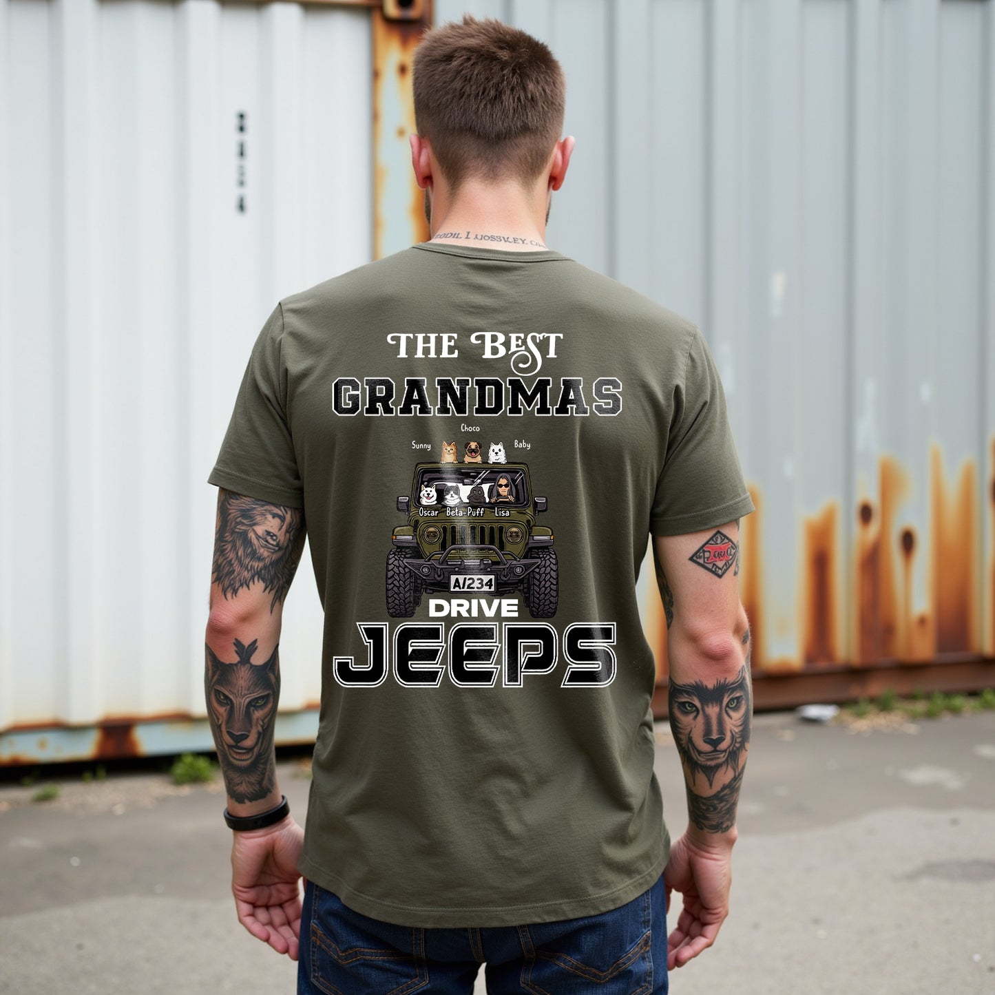 Celebrate adventurous grandmas with LouMark’s Best Grandmas Drive Jeeps Tee. This washed brown shirt features a vintage-style back graphic of a rugged Jeep with four dogs inside and the text “THE BEST GRANDMAS DRIVE JEEPS.” Made from 100% cotton, it offers comfortable casual wear with a playful, outdoor spirit.