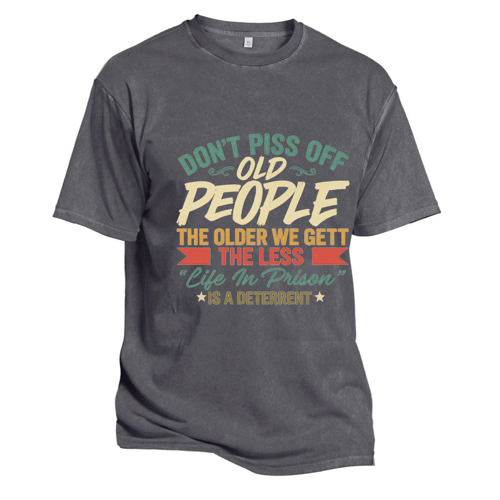 Don’t test their patience—or their sense of humor. The LouMark “Don’t Piss Off Old People” tee brings bold sarcasm and colorful typography to the forefront. Perfect for seniors who take pride in aging with attitude. Featuring distressed retro fonts and a clever punchline, this shirt reminds everyone that the older you get, the fewer consequences you care about.