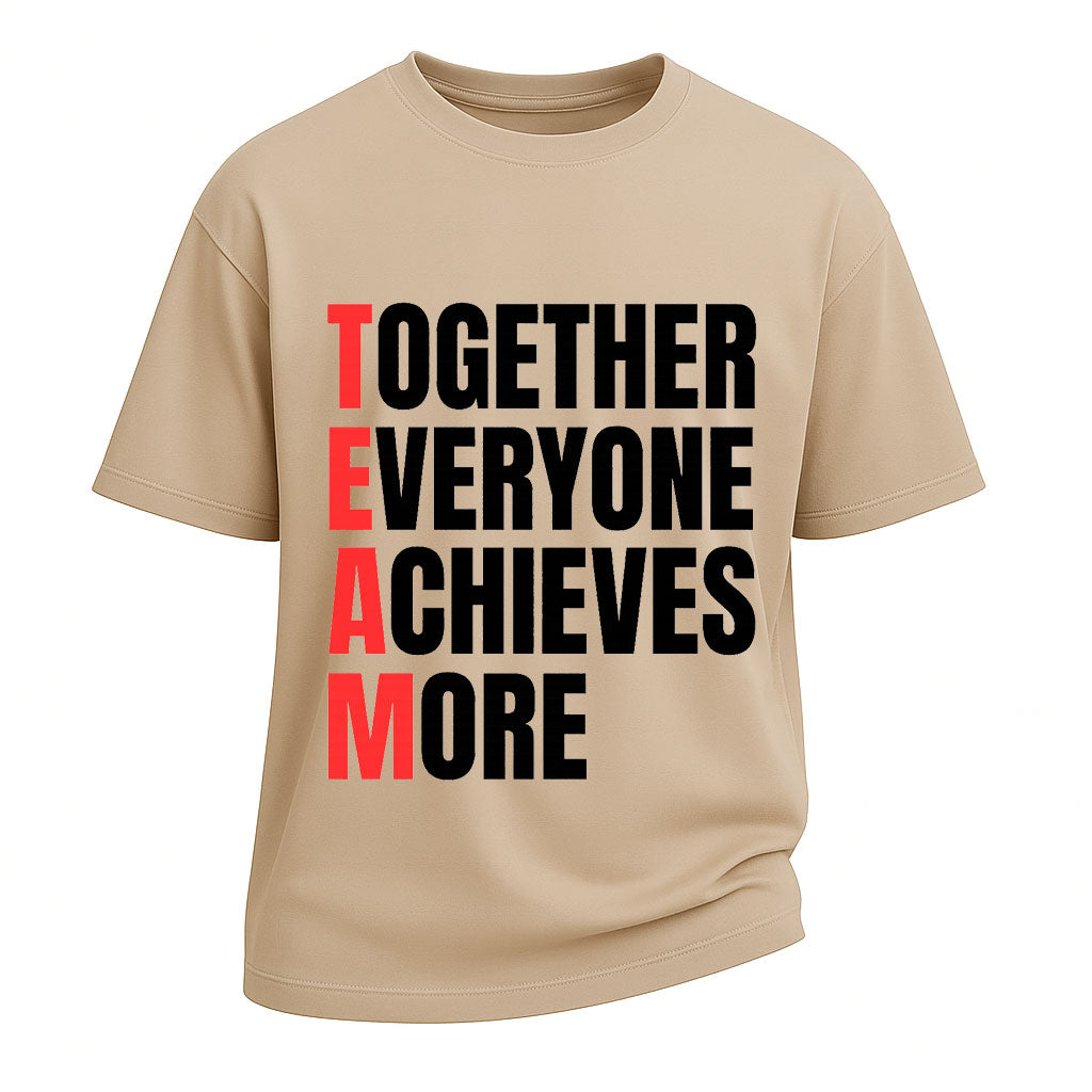 Rafforza l'unità con l'acronimo TEAM: "Together Everyone Achieves More" (Insieme, tutti ottengono di più). Questa maglietta LouMark ispira la collaborazione con la sua stampa a caratteri cubitali in rosso e nero, perfetta per gite aziendali, eventi di leadership o semplicemente per diffondere energia positiva. Realizzata in 100% cotone pesante per comfort e qualità duratura.