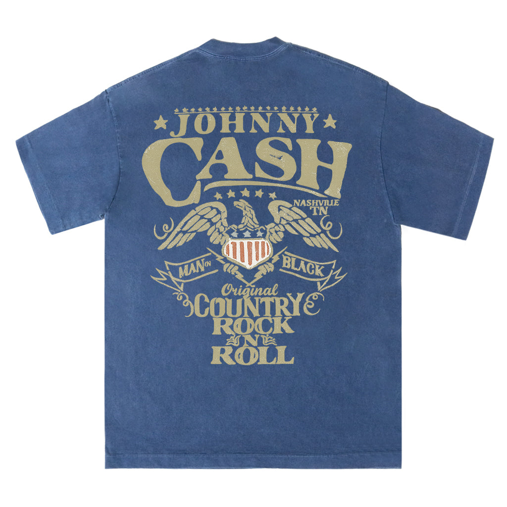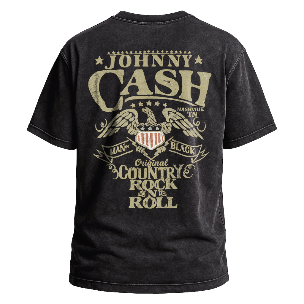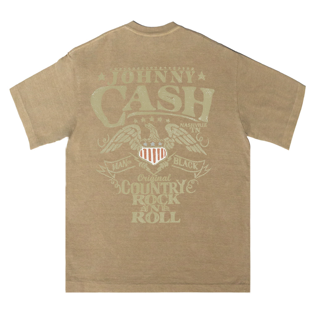 Rendi omaggio all'eredità dell'Uomo in Nero con la maglietta Johnny Cash Country Rock di LouMark. Questa maglietta marrone slavato presenta una grafica in stile vintage sul retro con un'aquila, stelle e la scritta in grassetto "JOHNNY CASH ORIGINAL COUNTRY ROCK & ROLL". Realizzata in cotone al 100%, offre un comfort classico e un'intramontabile tradizione musicale.