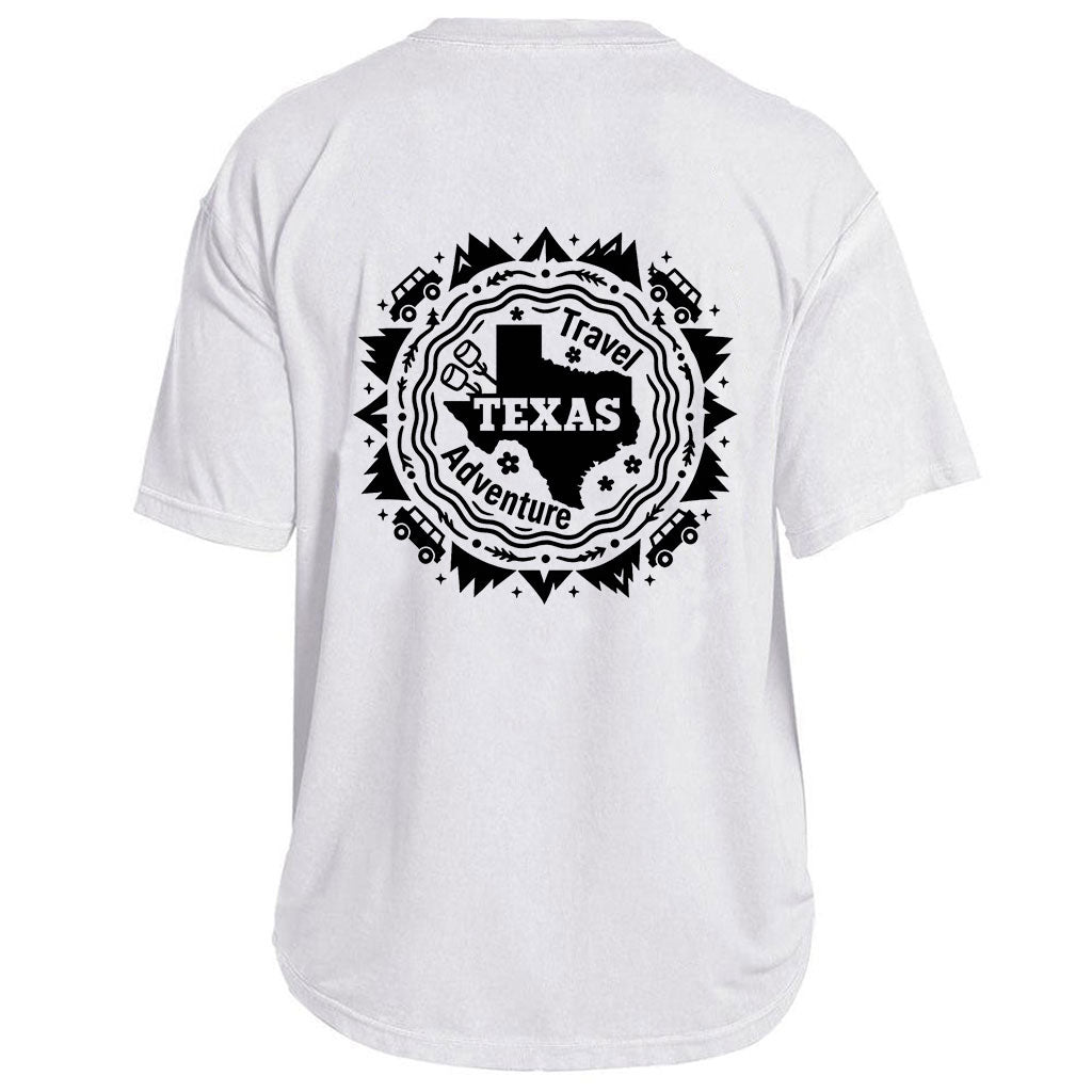 Per i più selvaggi e i viaggiatori dello Stato della Stella Solitaria, la t-shirt "Texas Travel Adventure" di LouMark cattura lo spirito delle strade aperte, dei sentieri accidentati e della grinta all'aria aperta. Questa grafica presenta un audace emblema circolare in stile tribale con icone fuoristrada, motivi montani e la silhouette del Texas al centro, con le scritte "Travel" e "Adventure". La t-shirt color marrone sbiadito aggiunge un tocco vintage a questo capo essenziale per lo stile di vita fuoristrada.