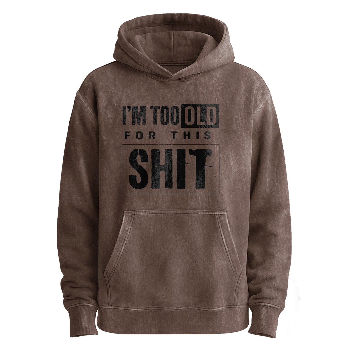 Say it plain with LouMark’s I’m Too Old For This Shit Pullover Hoodie.