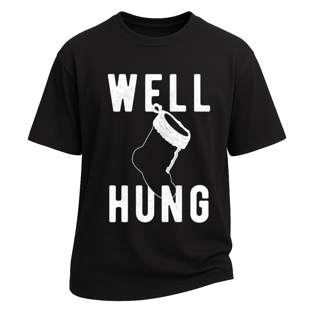 Keep the laughs rolling this holiday season with LouMark’s “Well Hung” T-shirt — a cheeky play on words featuring a Christmas stocking graphic that perfectly balances wit and festive humor.