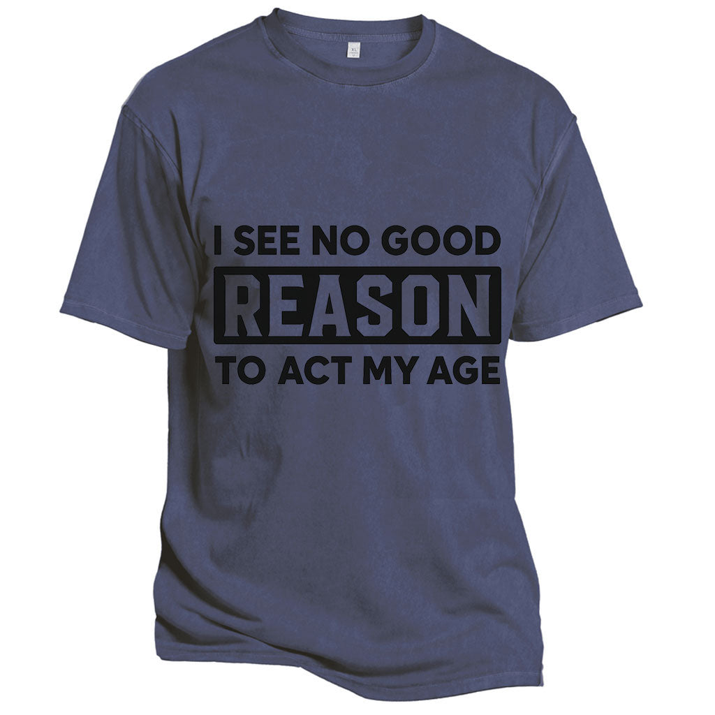 Defy expectations with humor in the “I See No Good Reason to Act My Age” tee from LouMark. Bold black lettering on a clean white backdrop speaks to the rebel spirit aging with attitude. Whether for yourself or a witty gift, it delivers timeless sarcasm in style.